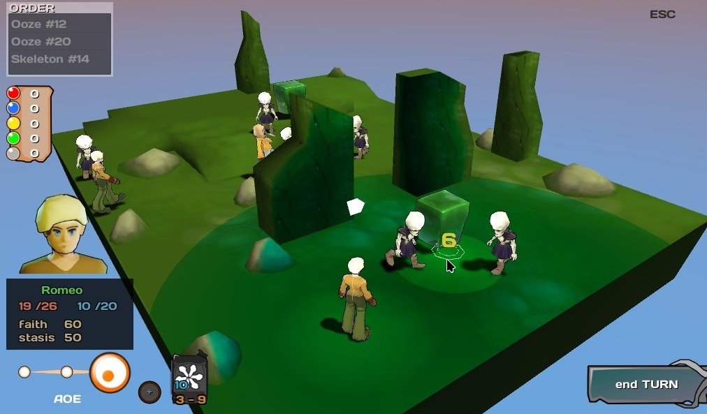 patchnotes: added new class - Fabler, new staff can be learned and equiped (give Cure spell), more skill slots and skills (projection, charge, true strike, shift, poison touch), improved mode switch (personal/radius/aoe), second location sketch, new kind of enemy - ooze, number of items now decrease after use (phoenix and potions), simple list of next 3 unit turns, some fixes and other improvements